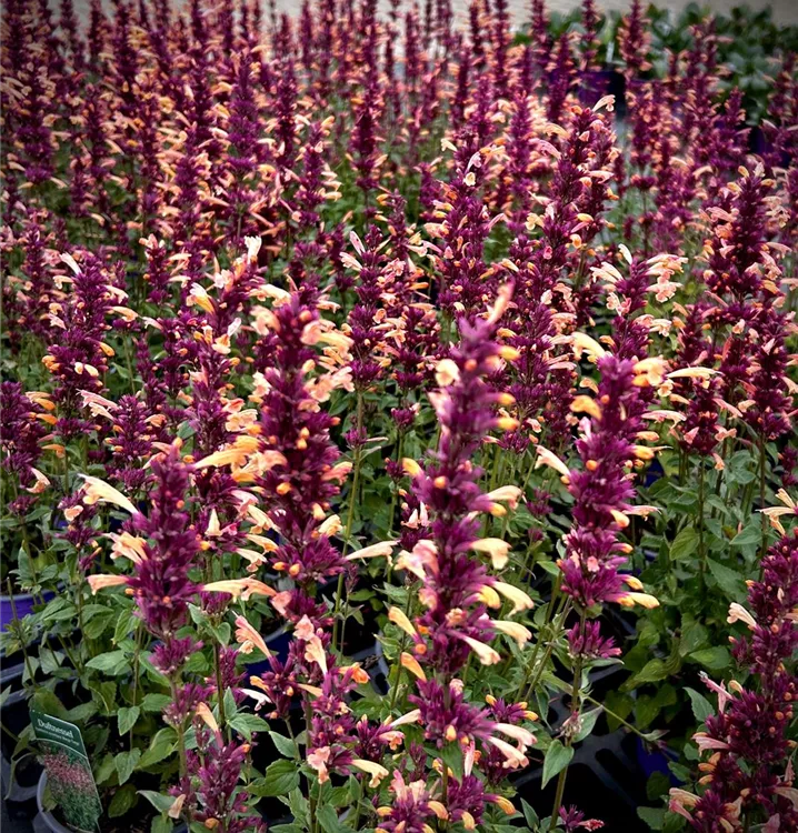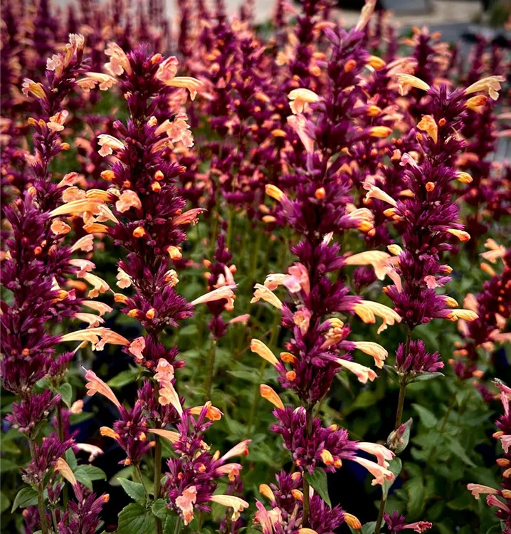 Agastache 'Mango Tango' bildet in Rispen angeordnete, apricot-rosafarbene Blüten ab Juni. Diese verströmen einen angenehmen Duft.